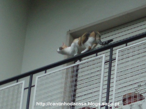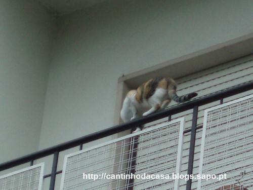 E, quando cheguei a casa, saindo do carro para abrir o portão que dá acesso à garagem, encontrei a minha vizinha do andar de cima. Parou um pouco a falar comigo, sobre as férias e o tempo que tem feito neste Verão, quando olho para a minha varanda, pego na máquina fotográfica, que por acaso a tinha no saco, e "click!":