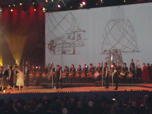 "Os afetos" foi o tema de abertura do espetáculo: música, dança , vídeos, grupos de bombos, uma fusão de coreografias, bem conseguida e executada por jovens e com a presença dos portugueses Rão Kiao e Cristina Branco e de um cantor Brasileiro, Chico César. Achei simpática a presença do Brasil em Portugal que, na minha modesta opinião, vem mostrar que podemos unir culturas e reforçar um dos laços que nos une: a língua.