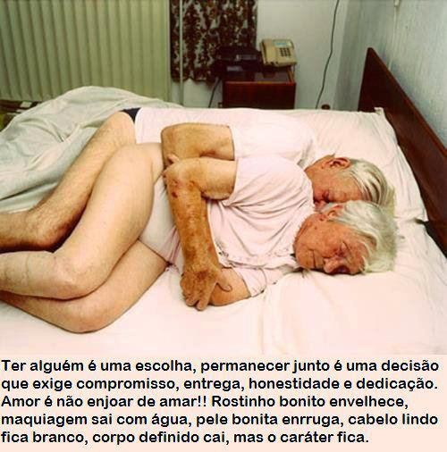 Concordo com a frase que ilustra a foto. Acho que permanecer juntos é mesmo uma questão de decisão e carácter, não só na velhice mas sempre. Quem ama, ama sempre, sendo novo ou velho.