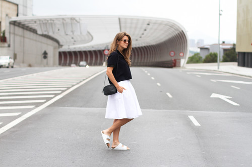 Olho para os pés. O look mudara. O calçado era então um par flip-flops, vermelhos. Atrás, o casal de filhos empurrava o carrinho e dentro deste, num saco de plástico da fruta, jaziam os sapatos beges de salto salto.