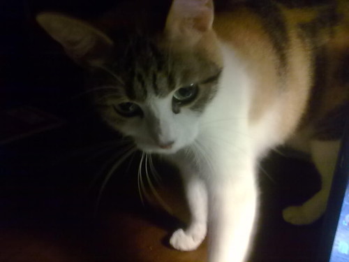 Soltava os seus miaus, enquanto eu resmungava, meigamente, com ele.