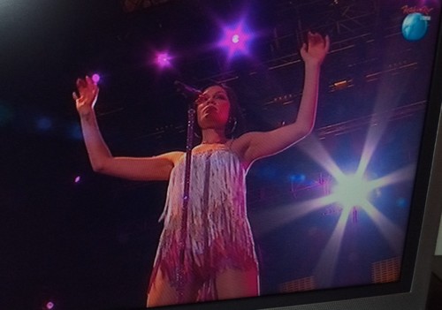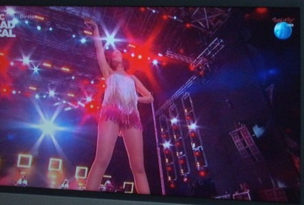 26 anos, corpo fantástico, um belo par de pernas (sou mulher, eu sei, mas, why not?), uma voz poderosa, um coro excelente, um guitarrista excepcional, simpática, leu a carta de uma fã, enviou-lhe uma foto autografada, põe as apresentadoras a chorar...interagiu com os fãs, limpou uma lágrima ao fã que com ela cantava, saca de um cachecol de Portugal , agita-o, dança, poê-no em volta do pescoço, canta entre os seguranças, "desafia-os", oh, meu Deus, que mulher.!