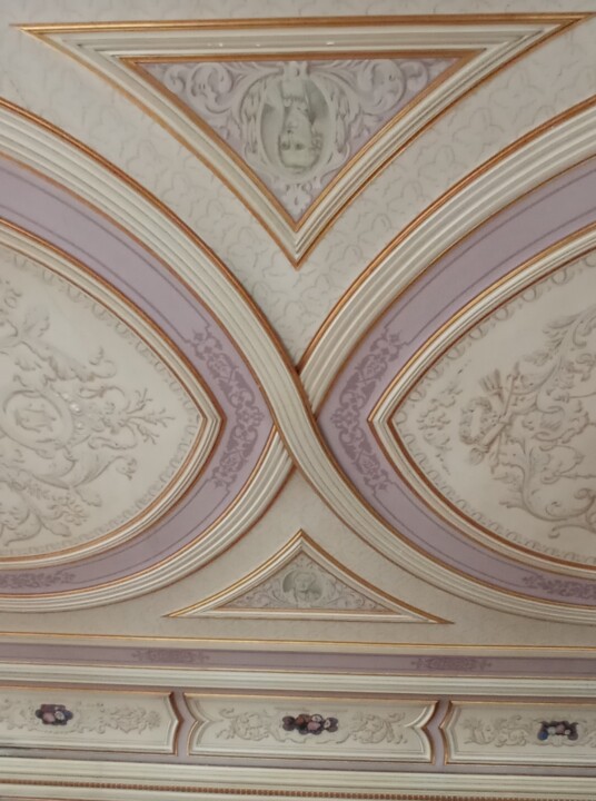 A sala de baile onde se vê no tecto as figuras alusivas à arte, ao campo, à música, ao teatro.